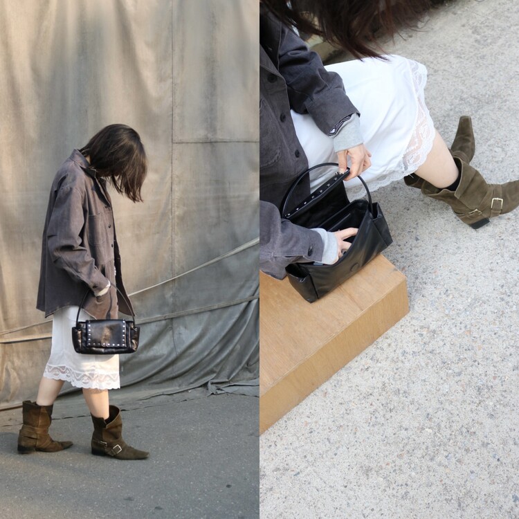빈티지한 무드의 크랙과 광택이 도드라지는 100% 소가죽 사용